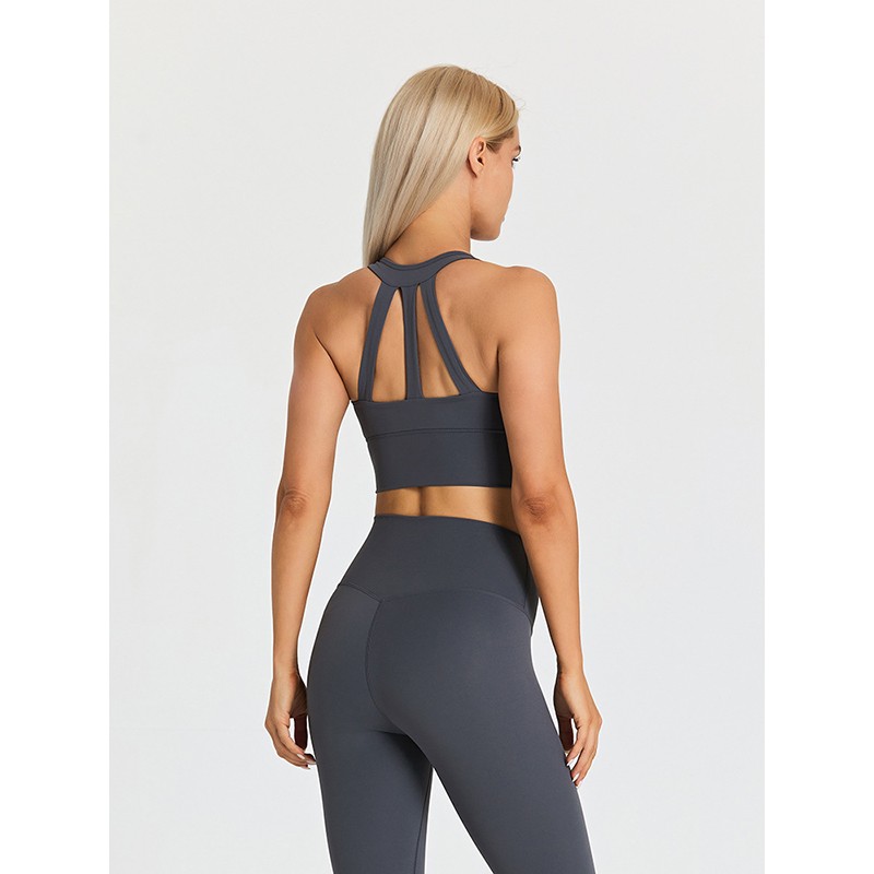 Großhandel Women Gym Fitness Rund Neck Sport BH. Heißverkauf Halftergurt Design Running Workout Yoga Crop Top für Frauen. Unser Fitnessstudio -Kleidung Sport BH bietet einen edlen und schicken Look, der sich sowohl im Fitnessstudio als auch außerhalb des Fitnessstudio zuversichtlich fühlt.